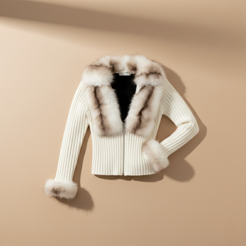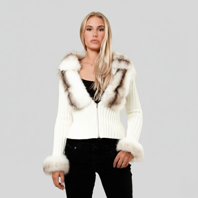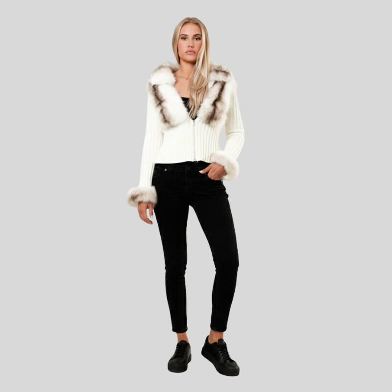 Annelore | Weiße Pelzjacke Damen mit kragen
