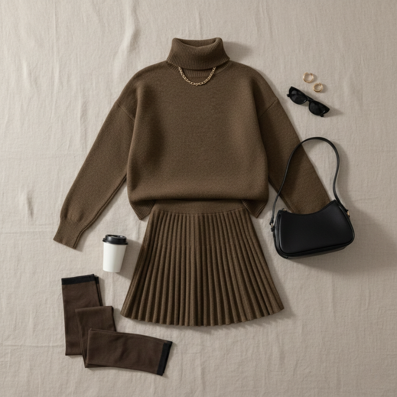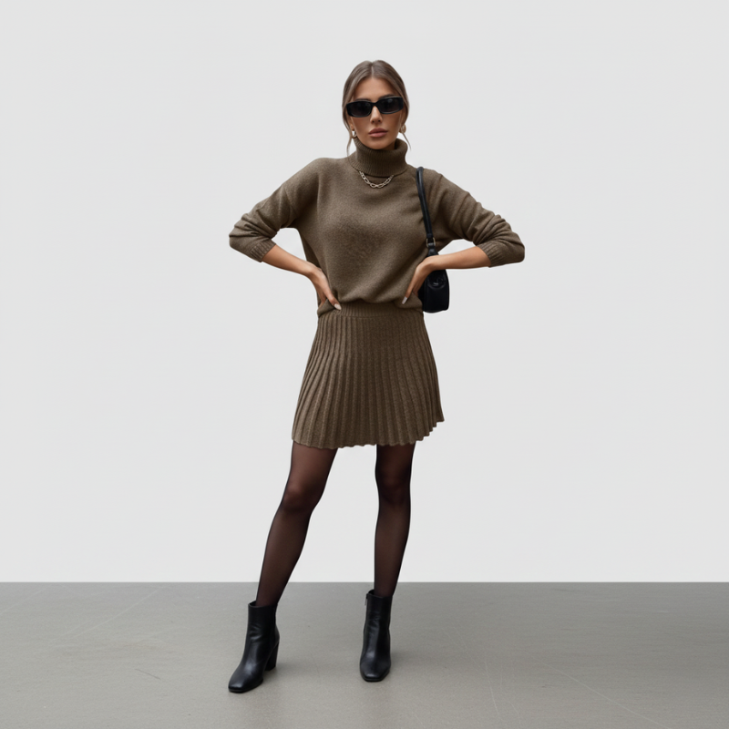 Gundlinde | Herbstliches Damen Set aus Rollkragenpullover